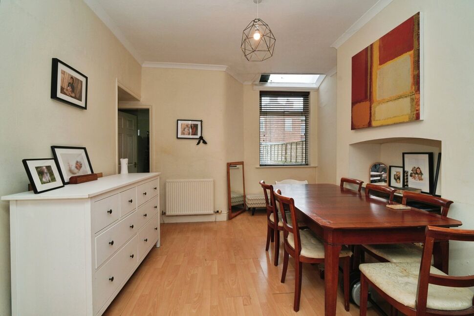 The dining room features a uPVC double glazed window to the rear elevation, laminate flooring, a radiator and a door leading to the understairs storage area.
