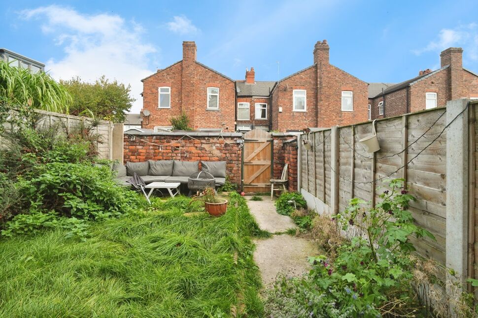 Upstairs, you’ll find a well-proportioned main bedroom with fitted wardrobes, two further excellent-sized bedrooms, and a white bathroom suite.To the rear, the property enjoys a private garden — ideal for relaxing or outdoor dining.This is a fantastic opportunity to purchase a well-located home with no onward chain, offering plenty of potential in a sought-after part of Sale.