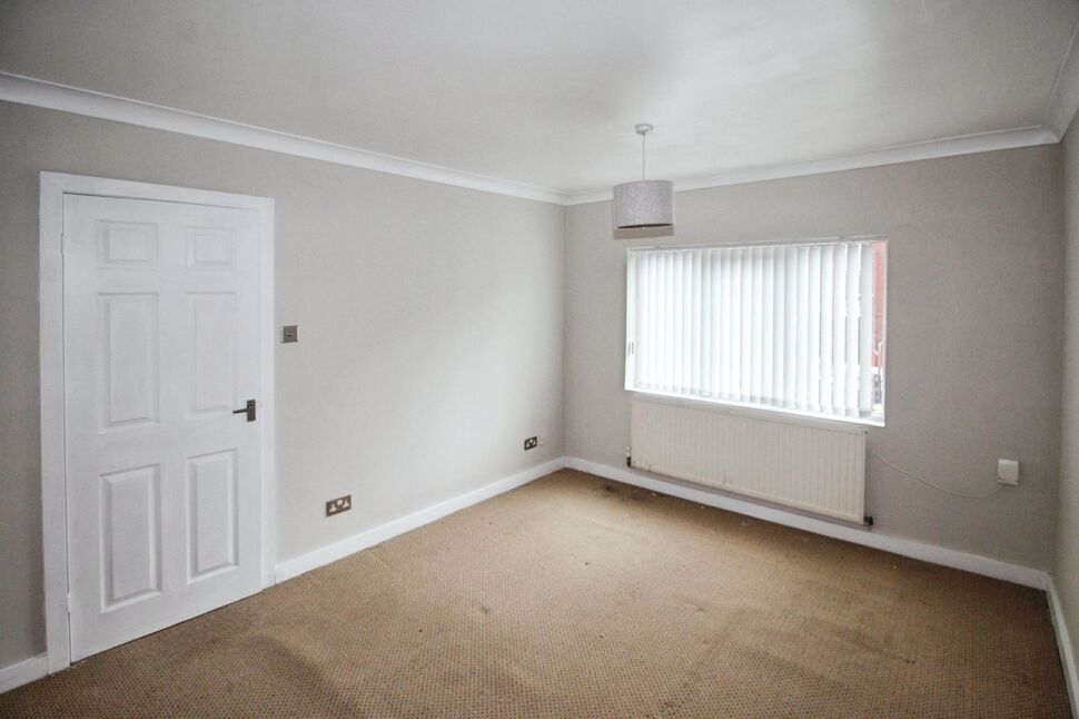 Large reception room having a front facing exterior door and double glazed window, central heating radiator, new carpets and stairs to the first floor accommodation.