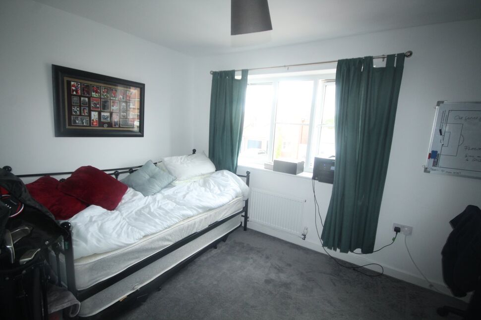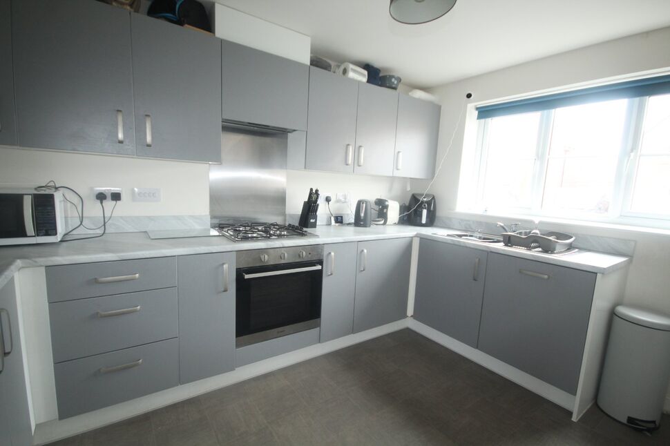 Fitted with a comprehensive range of base and wall mounted units with the base units having work surfaces above and incorporating a sink unit. Integrated oven and hob with extractor hood above. Integrated fridge/freezer, washing machine and dishwasher. Double glazed window to the front elevation. Radiator.