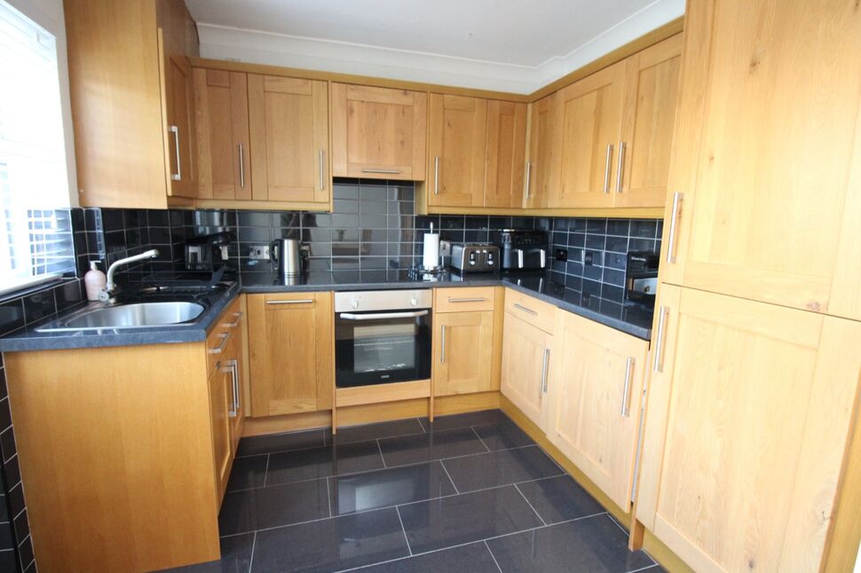 Excellent range of fitted high and low level units. Built in hob and oven. Sink unit with drainer. Integrated fridge/freezer. Concealed extractor fan. Part tiled walls and tiled floor.
