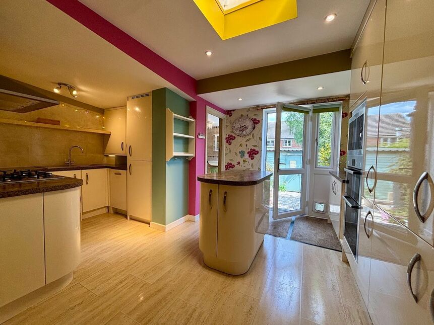 Continuing through, you are greeted with a sense of space and sociability from the open-plan family room and kitchen.