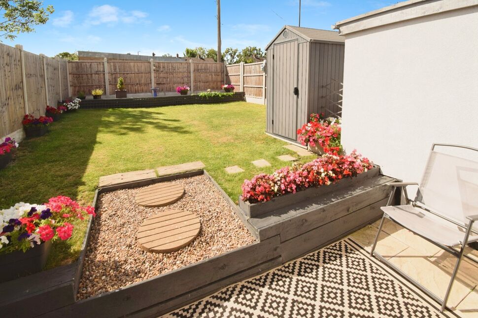 - LANDSCAPED GARDEN WITH PATIO LAWN AND STORAGE