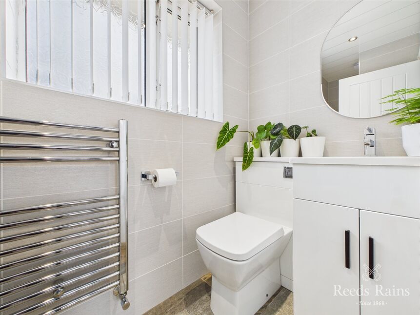 Every home needs a ground floor cloakroom, this one is perfectly positioned off the entrance hallway, having a rear facing double-glazed window and installed with a radiator. Offering a smartly appointed low flush w.c., ceramic tiling, and an attractive floor covering.