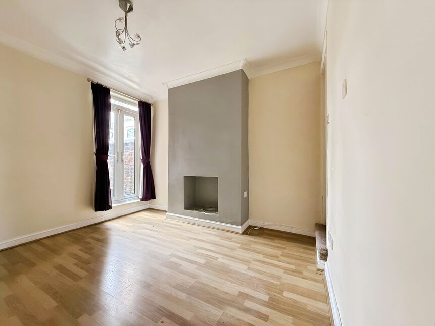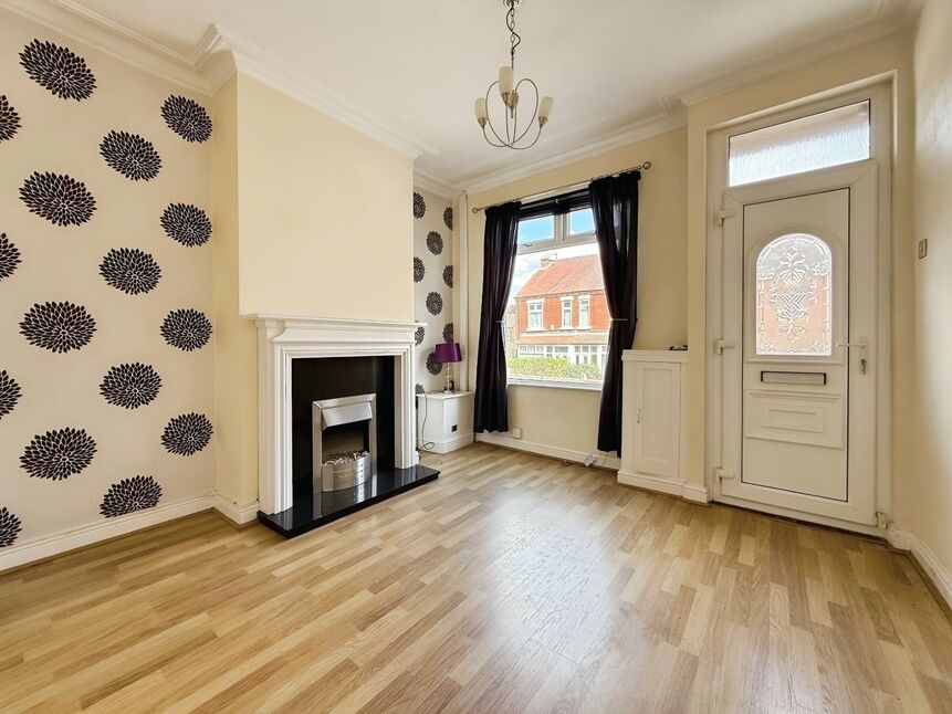 PVCu frosted double glazed front door and a PVCu double glazed window.Electric fire with a contemporary surround, marble style inset and hearth.Cornice. Radiator. Laminate wood flooring.