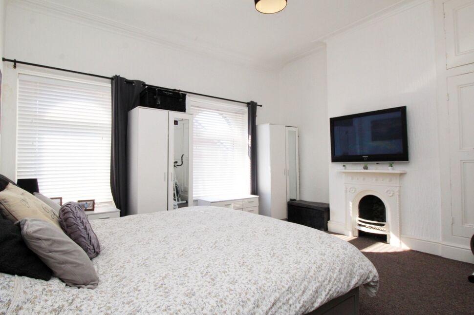 Good size double bedroom with radiator, power points, feature fire place, storage cupboard with two uPVC double glazed windows to the front.