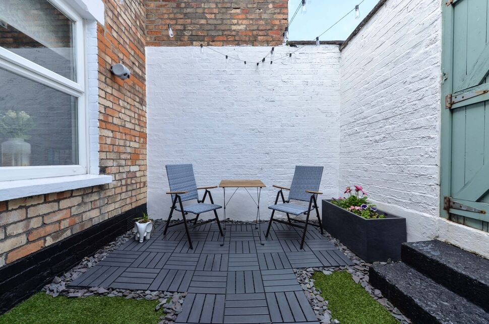 Forecourt to front. Enclosed easy to maintain yard to rear with loose stones and lazy lawn. Outside storage with Worchester gas fired boiler.