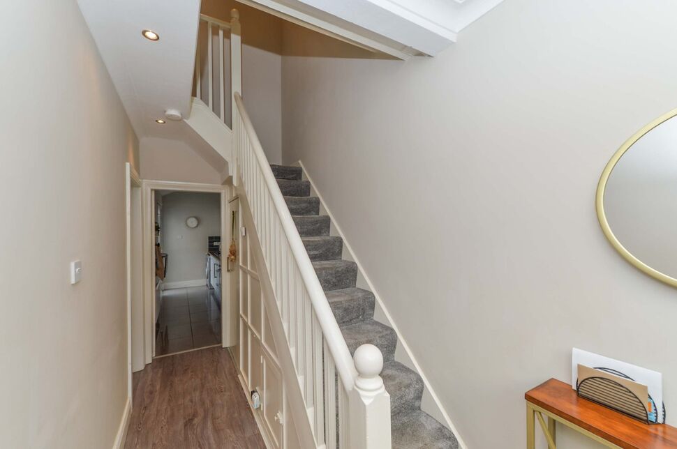 Under stairs storage. Recessed spotlighting. Laminated wooden flooring.