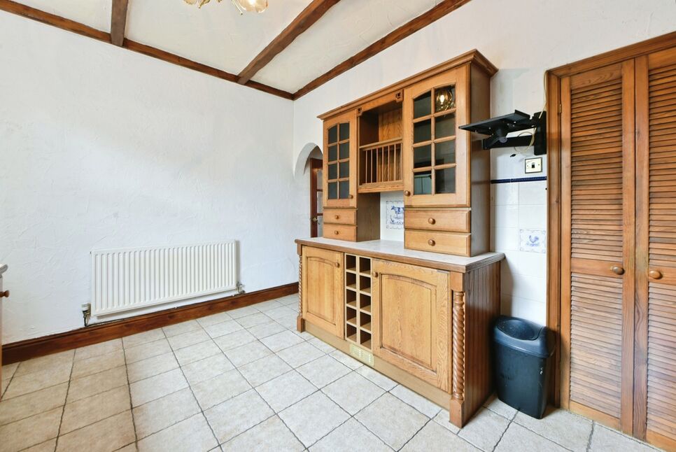 A range of units with room for gas cooker. Plumbing and space for washing machine. Room for fridge/freezer. Double glazed window to rear aspect. Door leading to the garden.