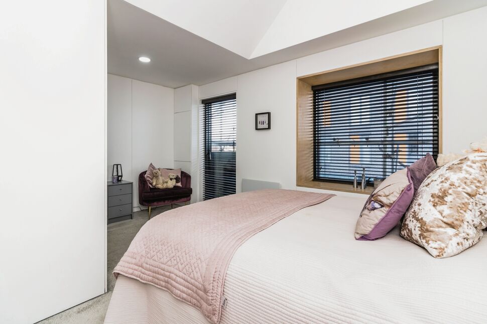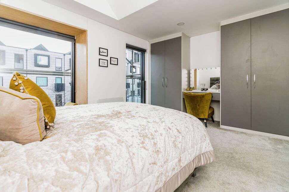 Two full-height windows to the rear elevation, carpeted floor, electric heating, fitted wardrobes and dressing table.