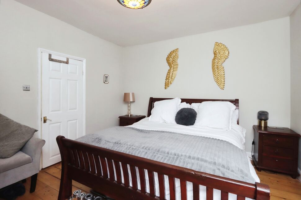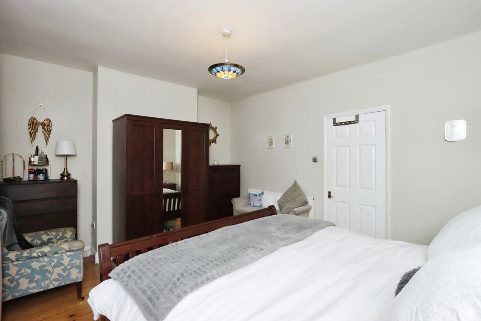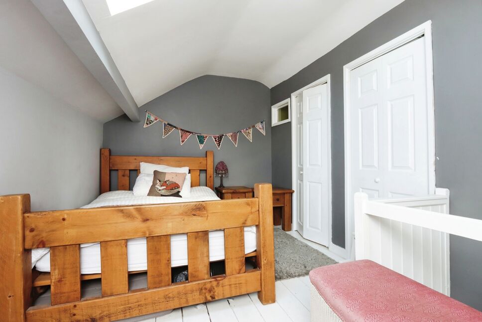 An extremely spacious bedroom plenty large enough to accommodate a large than average bed, this evening retreat has been beautifully styled. Like the rest of the property, the originally floorboarding is present throughout.