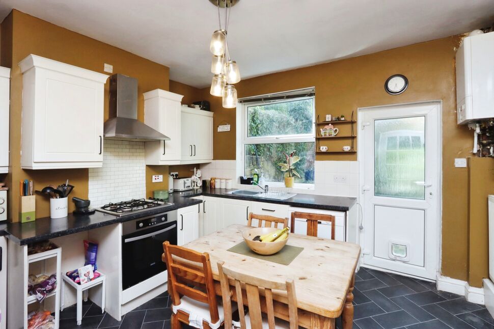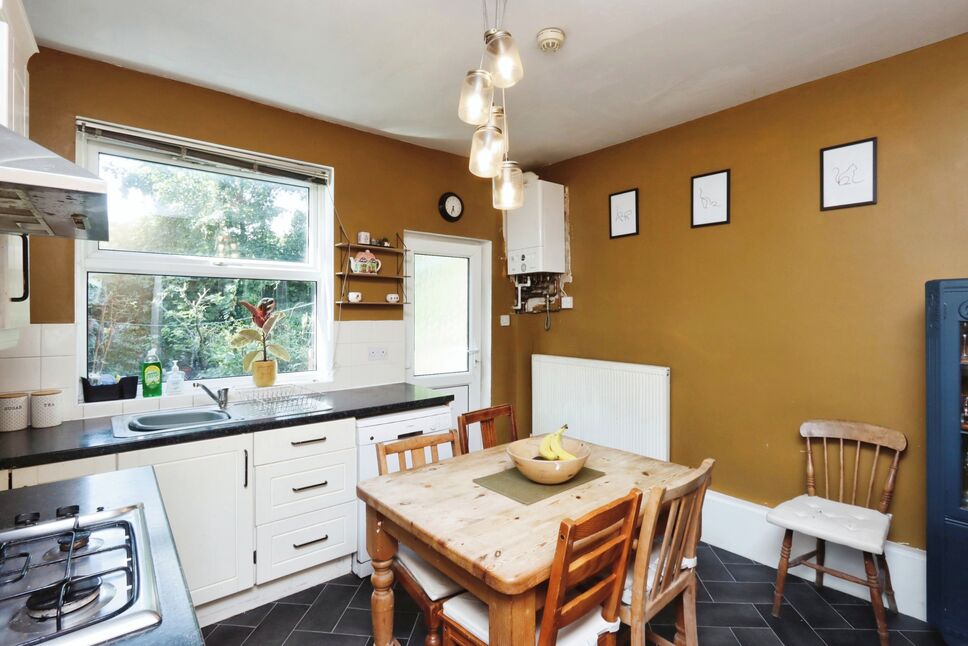 A superb kitchen with dining space available and plentiful kitchen unts. Characterful design and tastefully decorated. Vinyl flooring throughout and with access to the rear garden provided.
