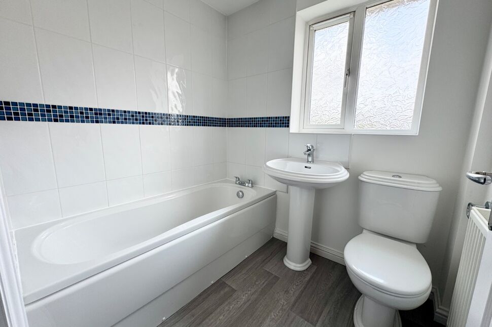 Fitted with panelled bath, wash hand basin and WC. Part tiled walls, window to the rear.