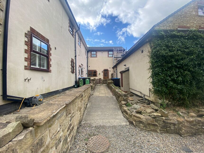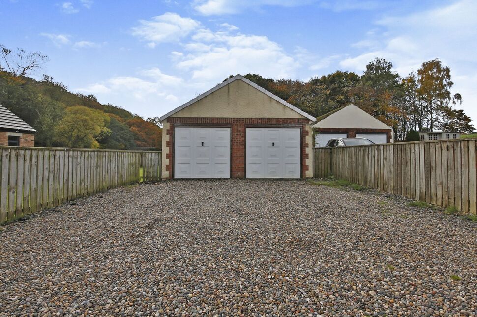 Courtyard at the front with off-street parking. Also contains a garden with a double garage.
