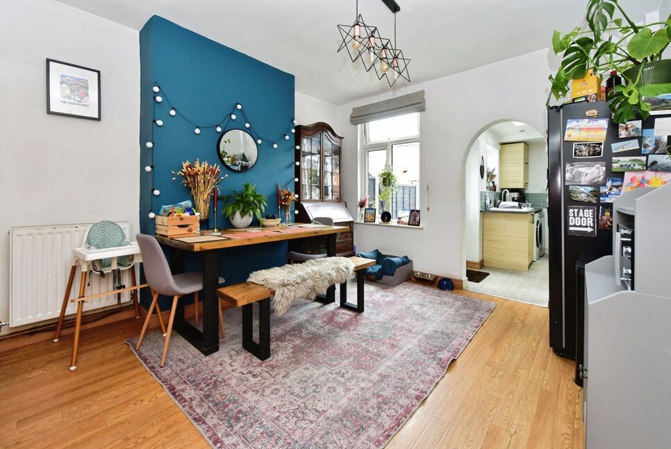 A very large dining area that effortlessly leads through to the kitchen extension and bathroom beyond. Wooden laminate flooring continued through to this room, with chimney breast feature wall to add a dash of colour and character. Access to the converted cellar also provided. A superb room for family gatherings and shared memories.