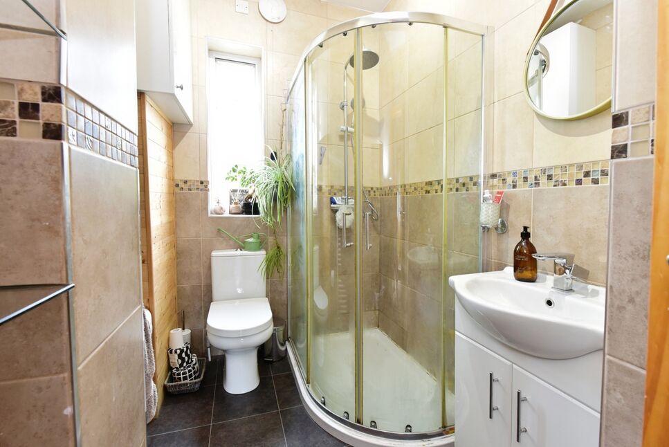 A fully tiled and neutrally decorated bathroom, complete with enclosed shower cubicle. Quality fixtures included, which include a rainfall overhead shower and handheld shower head.