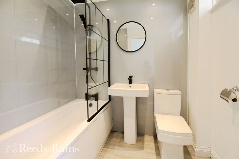 Fitted with a modern suite of WC, wash basin and bath with shower/ side screen. Heated towel rail. Extractor. Laminate flooring. UPVC double glazed window to the front. Inset down lighting.