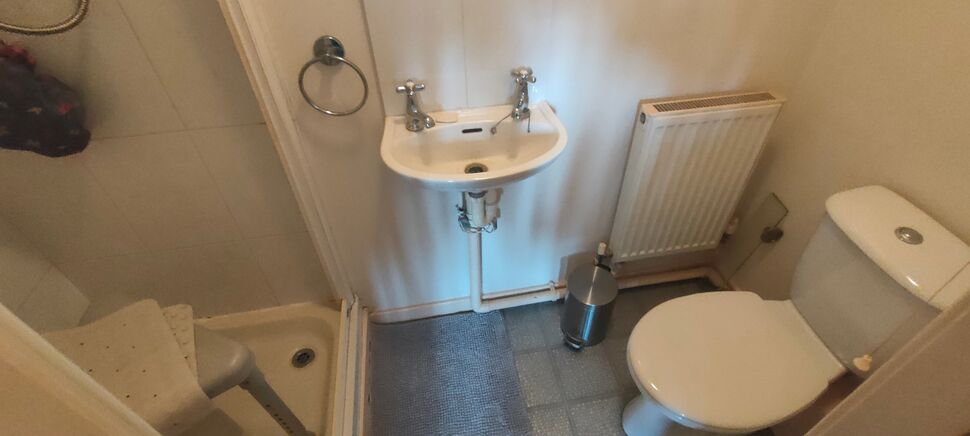 With a fitted suite of walk in shower cubicle with Triton electric shower, low level WC and wash hand basin. Radiator. Electric shaver point. Tile effect floor covering. Ceiling light point and extractor.