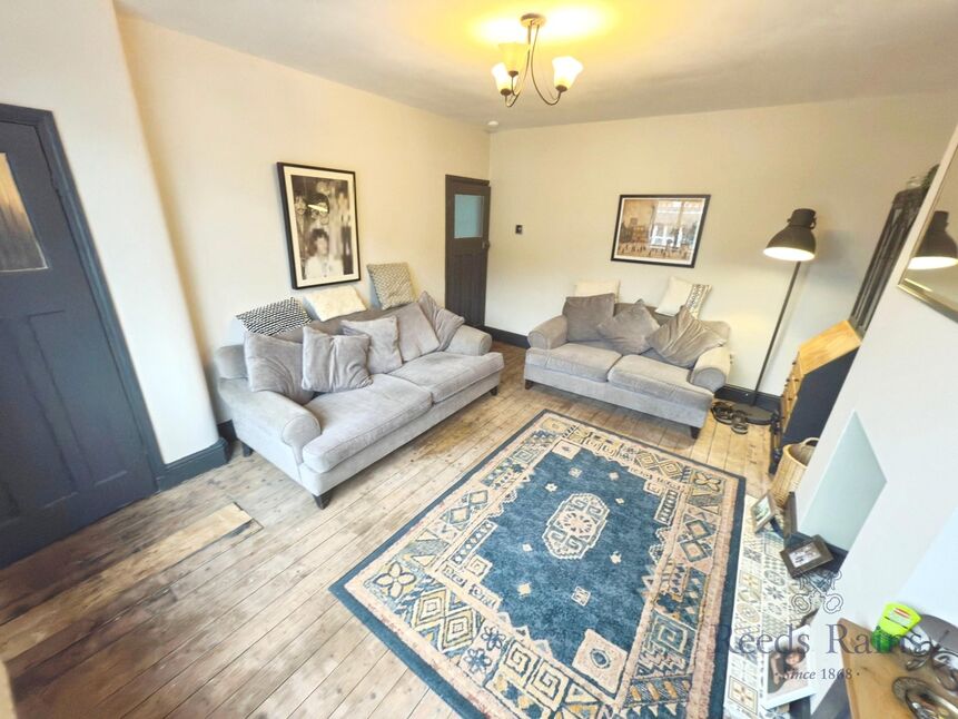 Large lounge area with wood flooring, double glazed window to the front aspect and wall mounted radiator.