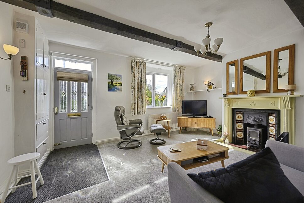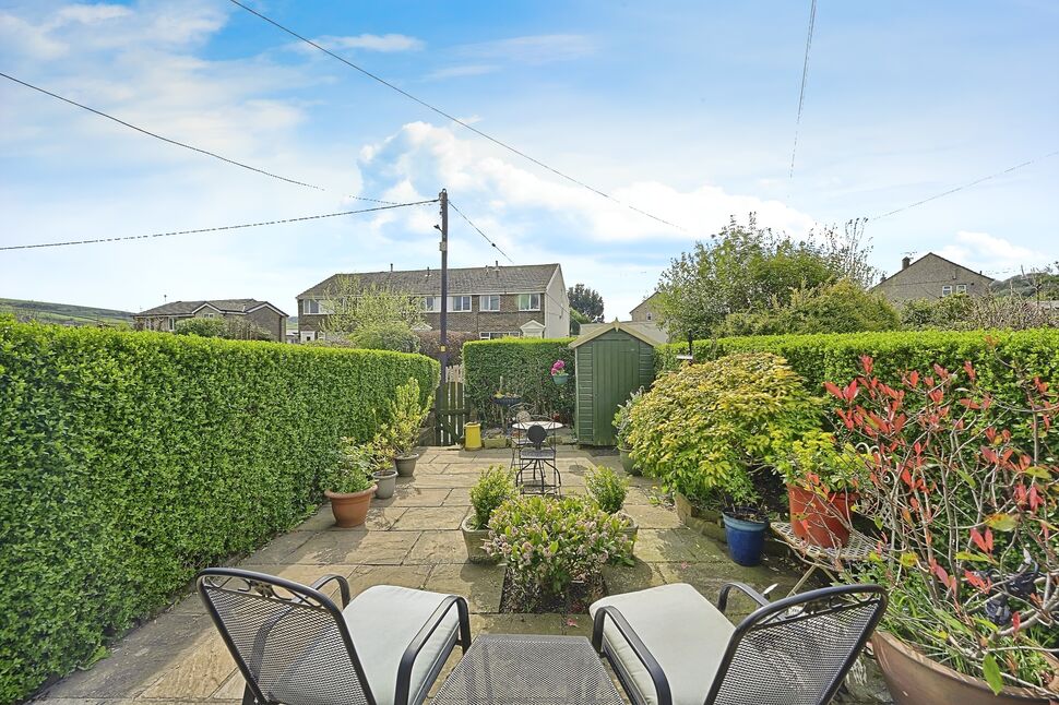 To the front of the property is a hedge lined patio garden which is hedge lined. A path which crosses the neighbouring property leads to an outbuilding which has power and lighting and can be used for both storage and as a workshop.