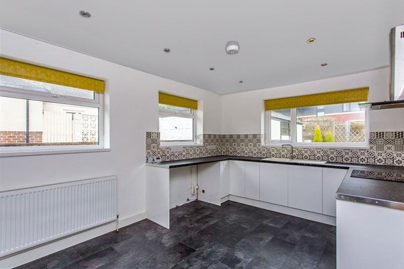 The kitchen is located at the rear of the property with induction electric hob, integrated oven, tiled back splash, radiator and spot lights.