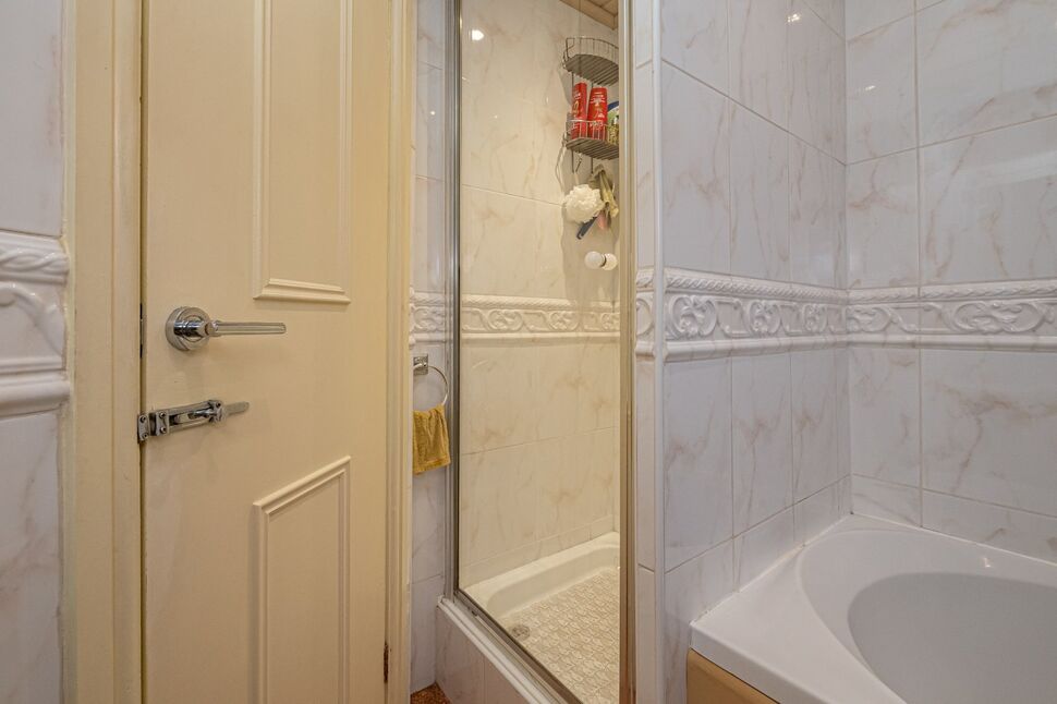 The bathroom comprises of panel jacuzzi bath with shower attachment over, vanity hand wash basin and WC. Walk in shower cubical with mains fed shower inset. Frosted UPVC double glazed window to the side aspect, shaving point and tiled walls.