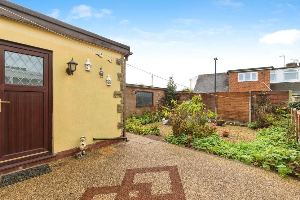 To the rear there is a low maintenance garden which is stoned with a resin patio perfect for sitting out. There are mature flower bed borders. Access to the detached garage.