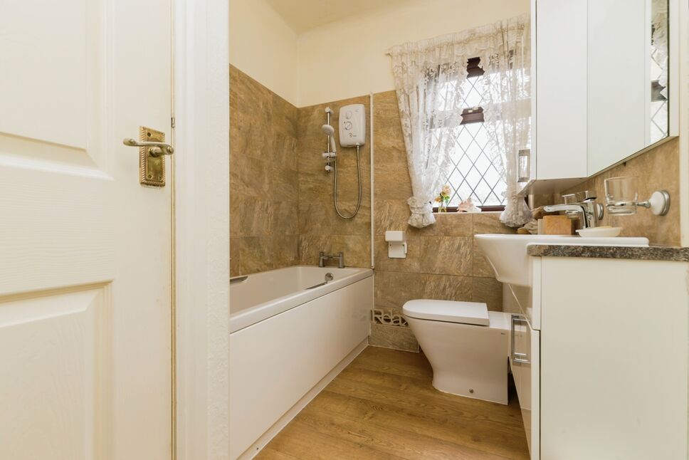 Three piece suite comprising of bath with an electric shower over, pedestal wash hand basin and low level WC. Part tiled walls. Radiator and ceiling light point. Built in storage cupboard. Access to the loft space.