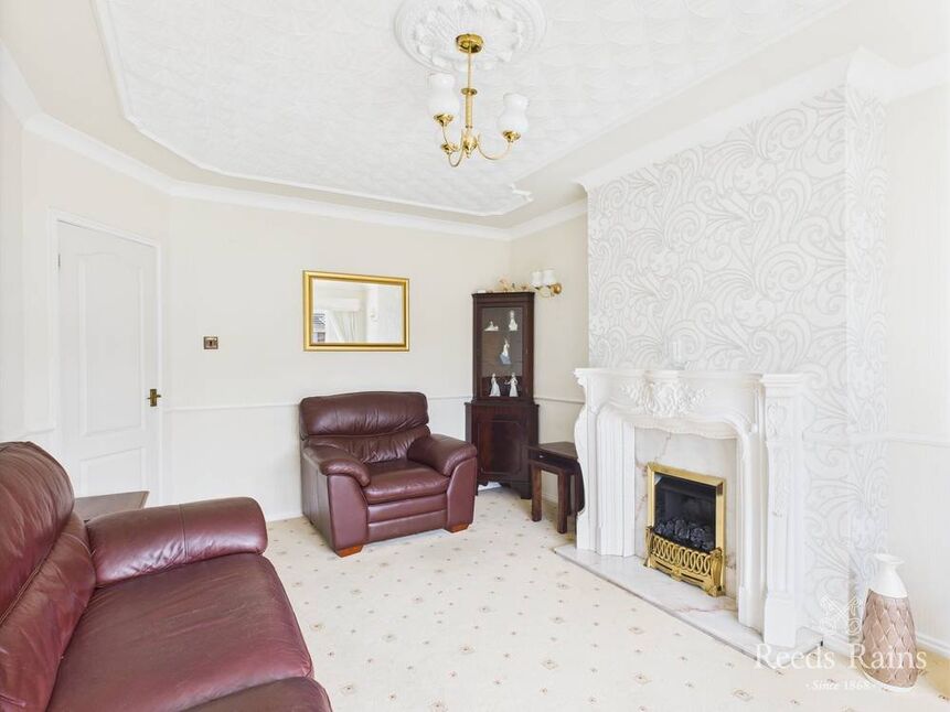 Double glazed bay window overlooks the front elevation. Radiator. Feature fire place with coal effect gas fire.