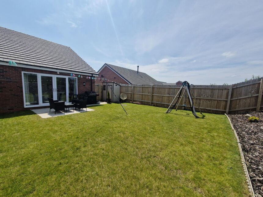 Outside, the bungalow benefits from a private paved driveway providing off-road parking, along with a dedicated electric vehicle charging point—an ideal addition for future-ready living. To the rear, there is a well-maintained lawned garden with a paved patio area, offering the perfect space for relaxing or outdoor dining during the warmer months.