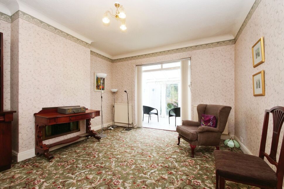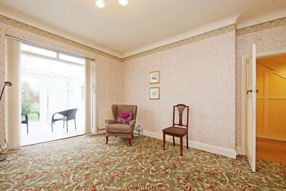Opening through to the conservatory area allowing lots of natural light to shine through. Electric fireplace, and central heating radiator.