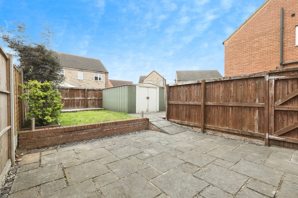 To side of the property is a driveway providing off street parking with side gate providing access to the rear garden being mainly laid to lawn with generous patio area for garden furniture, shed for storage and enclosed with fencing.