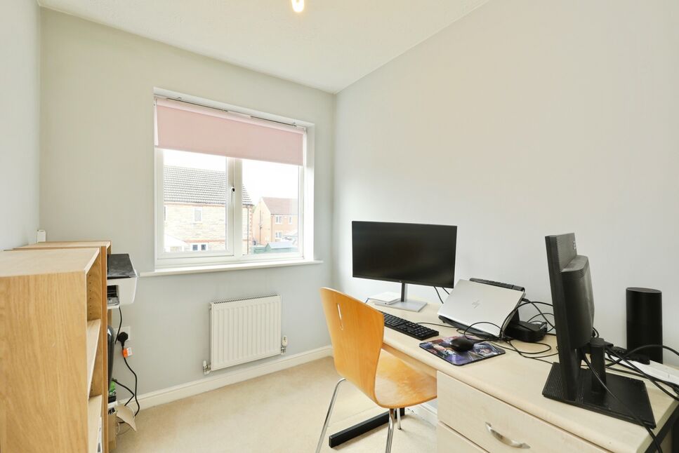Fitted carpet, central heating radiator and rear facing double glazed window.