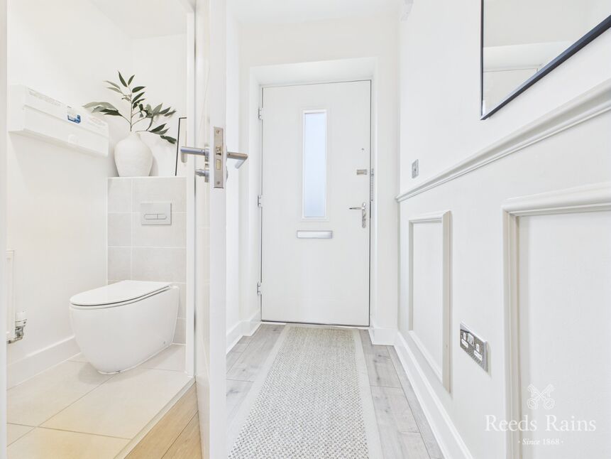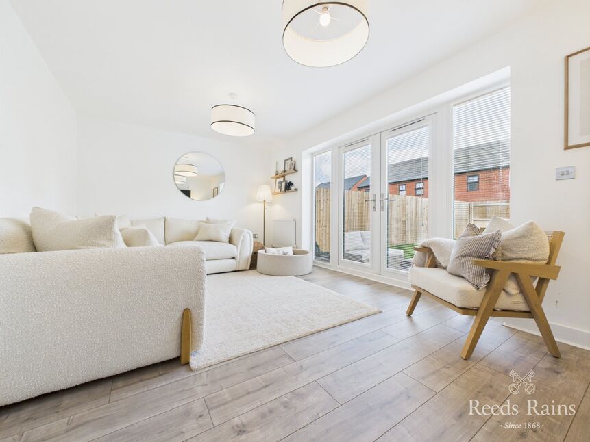 Spanning the width of the house at the rear, the sitting room is a stylish yet relaxed space made for modern living. It’s wonderfully light and airy thanks to the full-height French doors that open directly onto the garden, creating that perfect indoor-outdoor flow during warmer months. There's ample room for a large corner sofa, a statement media unit, and all the touches that make a house a home. Whether you're entertaining or winding down with a book, this is where you'll want to be. Laminate flooring. Radiator.