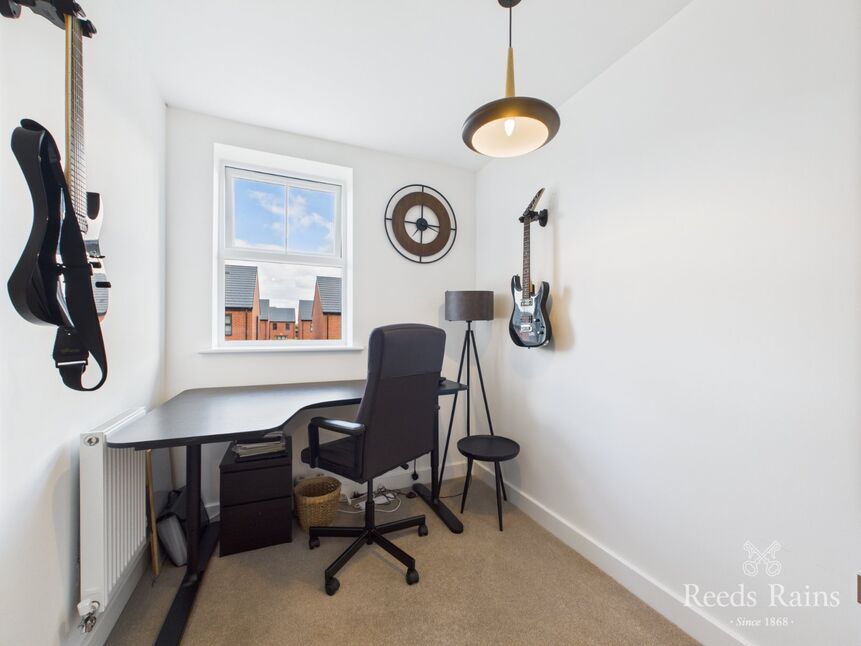 The fourth bedroom is equally adaptable as a home office or hobby space. Light, bright and functional, it offers excellent versatility to suit your lifestyle. Rear facing double-glazed window.
