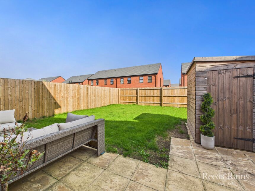 The rear garden is generous and secure, offering a safe and private space to unwind, play or entertain. A paved patio is ideal for summer barbecues or lounging in the sun, while a lawn gives children and pets room to roam. The garden is fully enclosed with timber fencing and includes a handy shed for storing bikes, tools or garden furniture. It’s a blank canvas that’s already well underway.