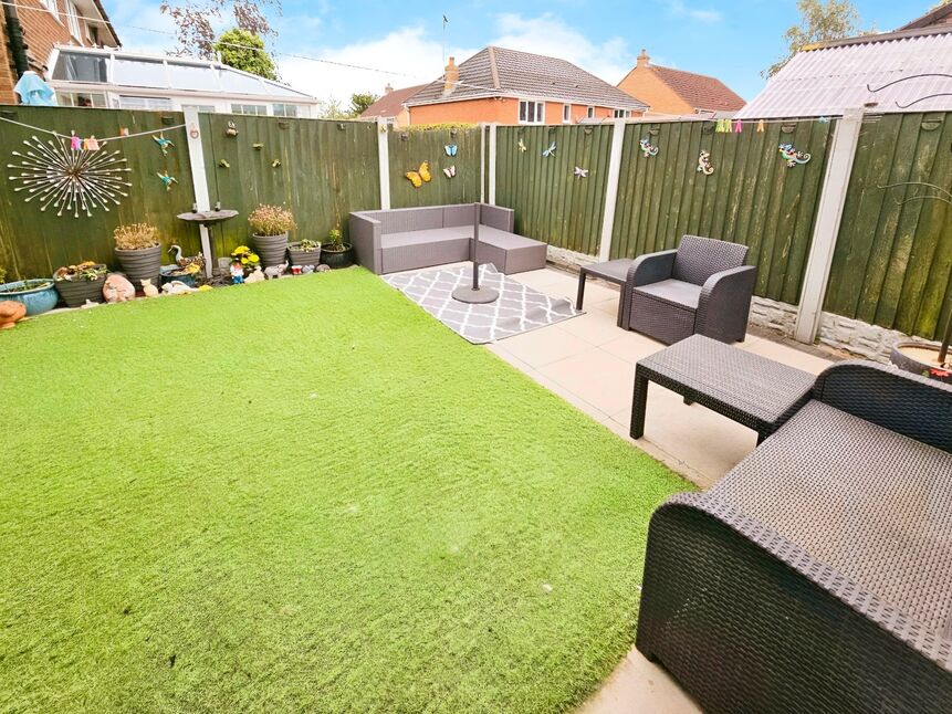 To the rear is a low maintenance fenced garden with artificial lawn, water tap, paved patio area, security lighting and two timber sheds. To the side is a pathway providing access to the front/rear and security lighting. To the front is a block paved driveway for several vehicles and a low maintenance slate chippings garden and security lighting.