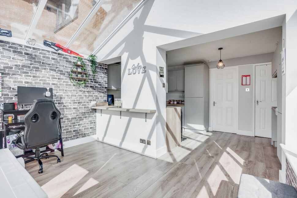 Perfect for dining and entertaining. Wood effect floor, French doors to rear garden