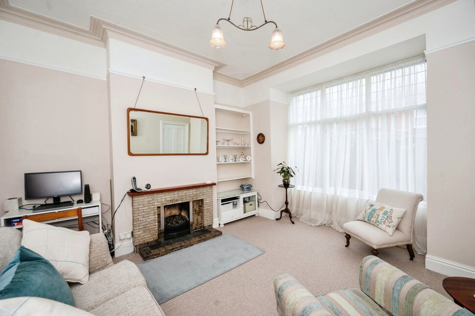 The property showcases three reception rooms, each adorned with large windows and high ceilings, creating a sense of spaciousness. Two of these rooms also feature fireplaces, adding a touch of cosy elegance, whilst the third reception room benefits from wood flooring and ample space for a dining table.