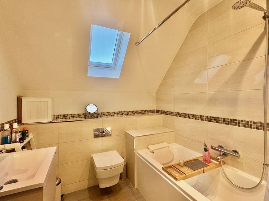 To the rear of the property there is a good sized southerly aspect low maintenance garden with mature trees providing privacy, artificial grass, side access, external power and lighting.