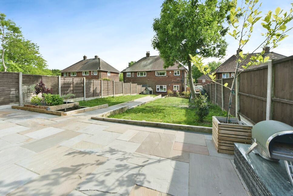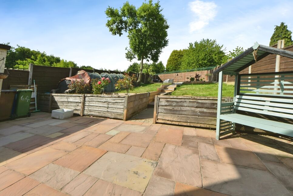 A fantastic rear garden with paved patio area leading to the garden. To the front is driveway parking.