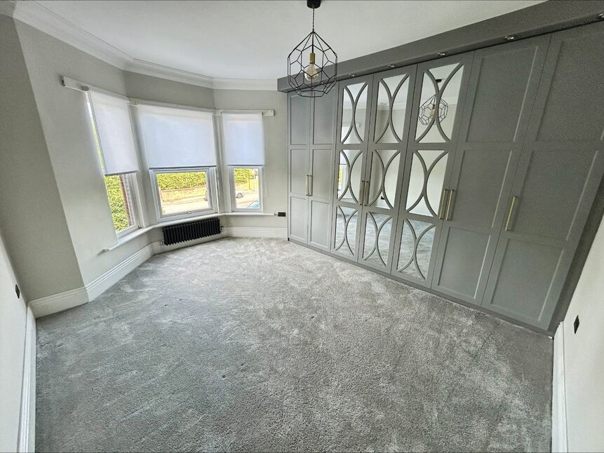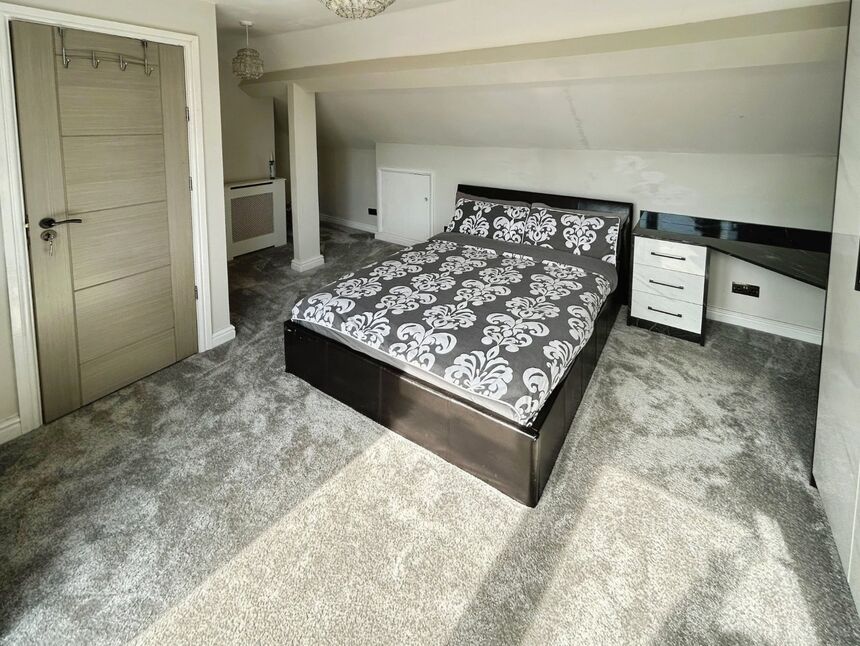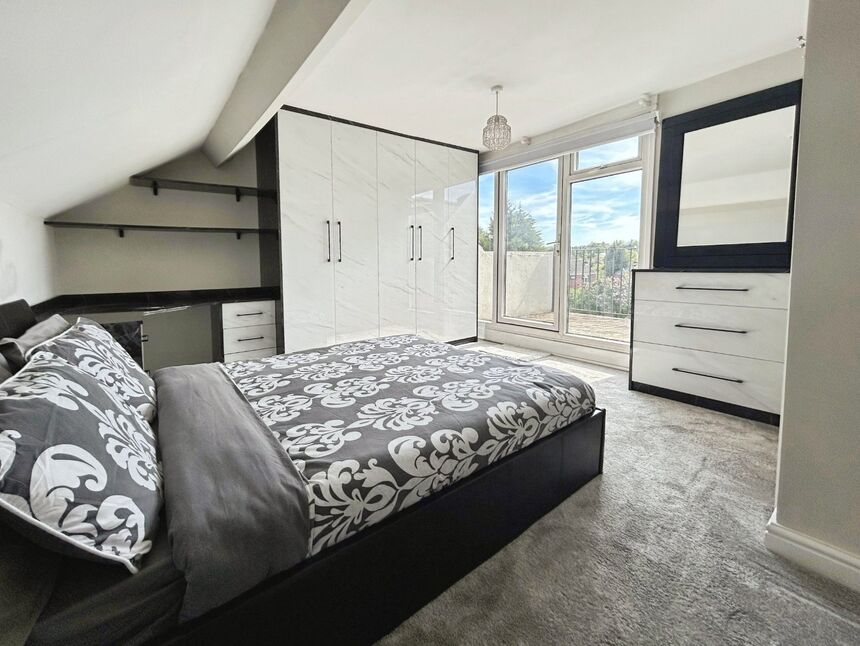 Bedroom five is fitted with a central heating radiator, rear facing PVCu patio doors to balcony.