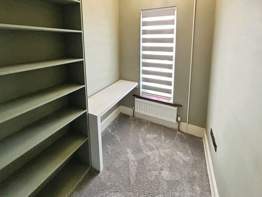 The fourth bedroom is fitted with a central heating radiator, shelving and a front facing PVCu double glazed window.