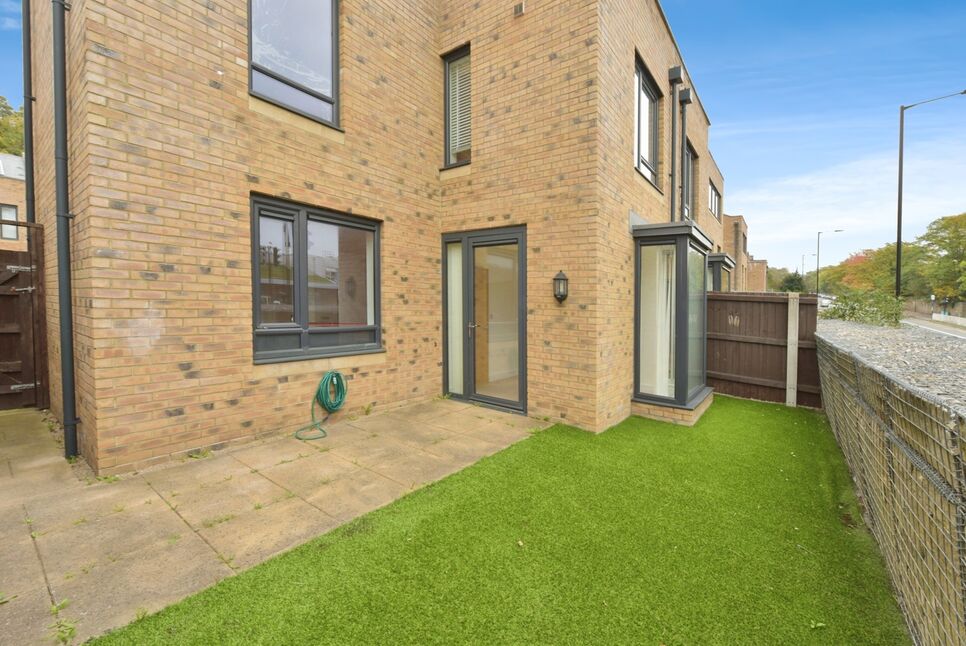 A private rear garden laid with astroturf lawn and a patio area, perfect for family BBQ's and outdoor entertainment.