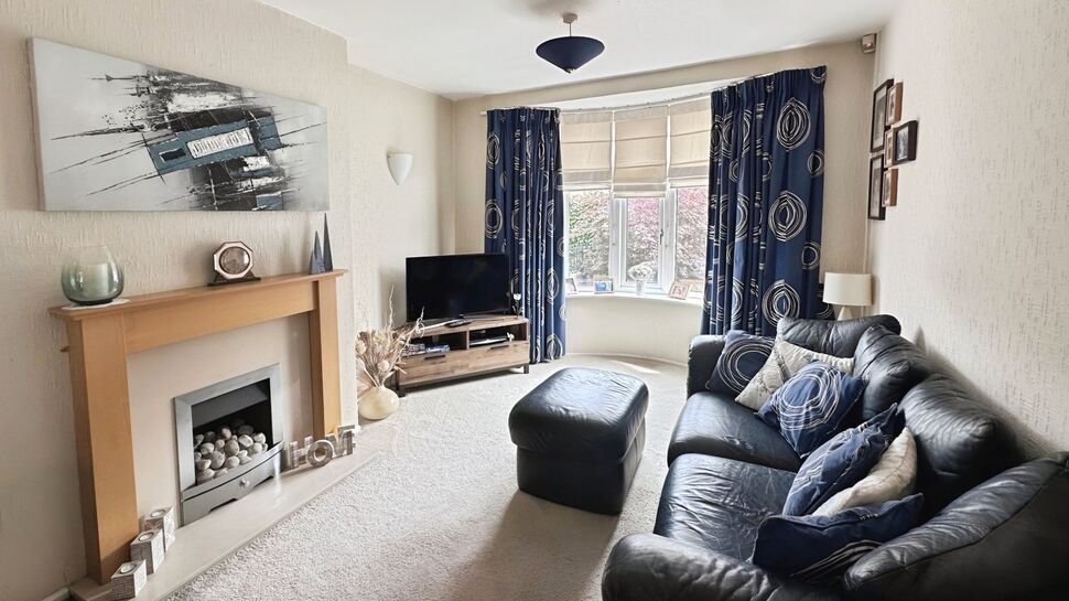 Located at the front of the property with carpeted floor, electric fire, bay window, access to the conservatory, ceiling light point and radiator.