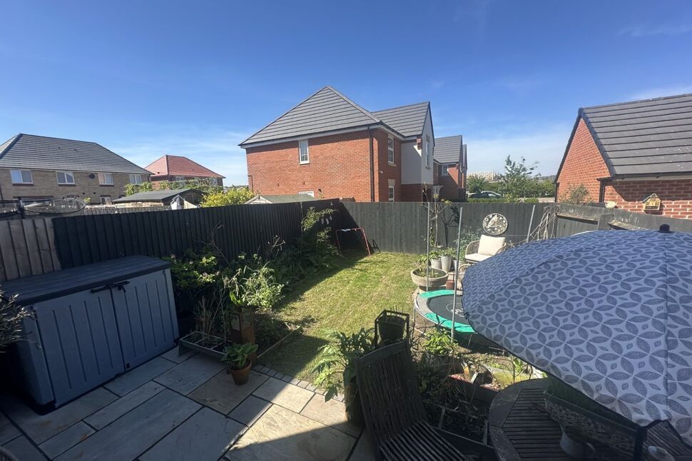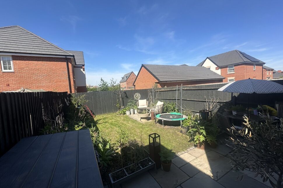 Attractive rear gardens with patio area leading to the lawn garden, with fence borders, enjoying a good degree of seclusion.