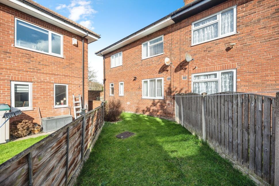 There is hedge boundary to the front and a lawn to the front and side. To the rear, there is a further lawn, enclosed by fencing.