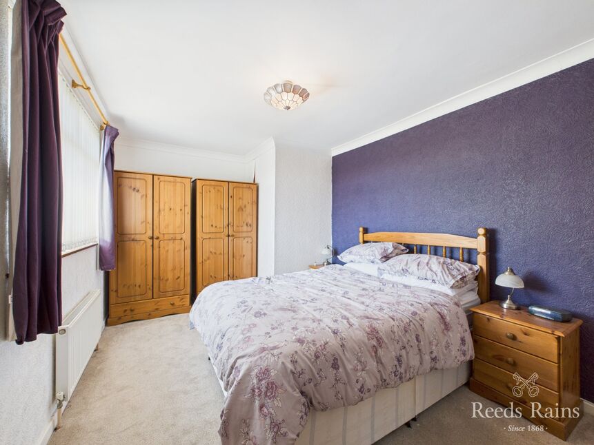 Facing the front, the principal bedroom is generously sized and filled with natural light. A built-in storage cupboard keeps things practical, while ceiling coving and a radiator complete the picture. With its proportions and outlook, it’s ready to be re-imagined into a stylish and restful retreat.