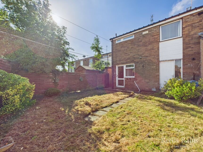The property is positioned near the head of a popular residential cul-de-sac, with an established front garden that adds kerb appeal. Laid mainly to lawn and enclosed by timber fencing, it’s simple, easy to maintain, and benefits from a shared pedestrian pathway that continues to the side and rear.