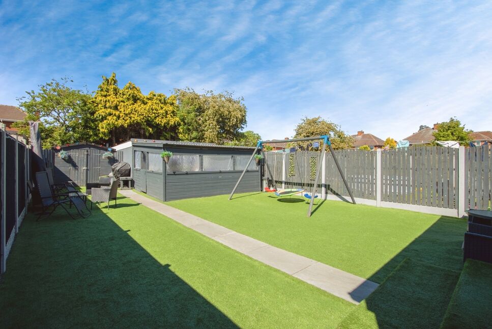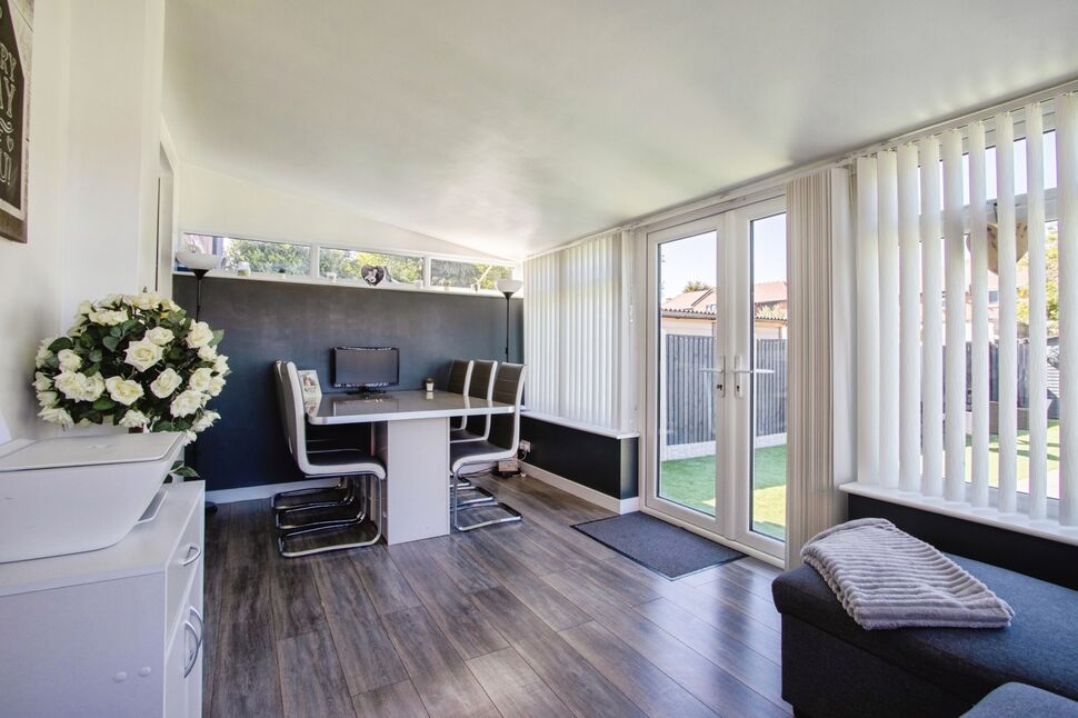 The front of the property is enclosed with off road parking for 2 cars. The rear garden is a good size, enclosed with a further parking space access via double gates. With artificial lawn, a shed and a large insulated outbuilding currently used as a day care facility.